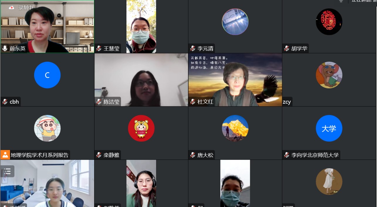 2022年11月9日上午9:30开始,老司机论坛 地理学院学术月系列报告——“以学生发展为本的高中地理教与学”线上报告顺利举办。本次学术报告由地理学院地理教育中心主任蔚东英老师主持,邀请北京80中正高级职称、特级教师杜文红老师为主讲嘉宾。虽然受疫情防控影响,此次学术报告由原来的线下线上报告形式改为线上报告,但是校内校外师生参与热情不减,达到了预期效果。