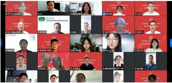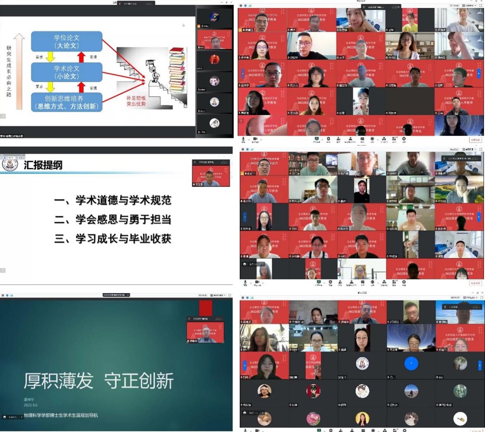 9月9日下午,学部通过线上形式举行2022级新生开学典礼。学部党委书记苏筠、部长宋长青及学部党政领导、各二级单位负责人、新生班主任、行政管理教师、珠海校区的教师代表出席了此次典礼。宋长青部长为同学们带来“开学第一课——成功,从地理学部起步”,从认识地理学、认识学部、认识老师、认识自己、做好自己和认识未来世界五个方面进行讲述,给同学们徐徐展开了一幅地理的长图画卷,鼓励各位地理新人为画卷添彩。江平一同学代表本科新生发言,以“你好,地理新人”为题,讲述了对地理的热爱和与地理专业结缘的故事。王泽同学代表研究生新生发言,以“恰同学少年,奋斗正当时”为题,从抓住机遇、修学储能、持之以恒三个方面为大家分享了对自我的要求和对未来的期许。2020级博士研究生郑海燕作为在读生代表,以“不为自己的人生设限,做心系国家的地理人”为主题,向新生分享了自己在师大的所见、所闻、所思、所想,勉励每一位新生都能够勇敢前行、大放异彩!王雪超老师作为新生班主任发言,以“有幸成为一名北师大地理人”为主题,用三张照片分享了与北师大的故事,并勉励同学们珍惜在北师大的时光。开学典礼结束后,学部还举行了教学培养说明会,为本研新生细致解读培养方案、树立学术道德规范。