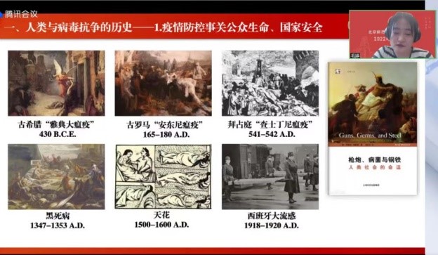 9月9日,学部团委书记毛婷老师为新生带来题目为“共克时艰,战疫青春”的主题讲座,从人类与病毒的抗争历史、当前的疫情防控形势、现阶段的学校防疫工作等方面进行了介绍,并面向全体新生发起“遵守防疫规定,配合防疫工作”的倡议,帮助新生进一步树立战疫必胜的信念。