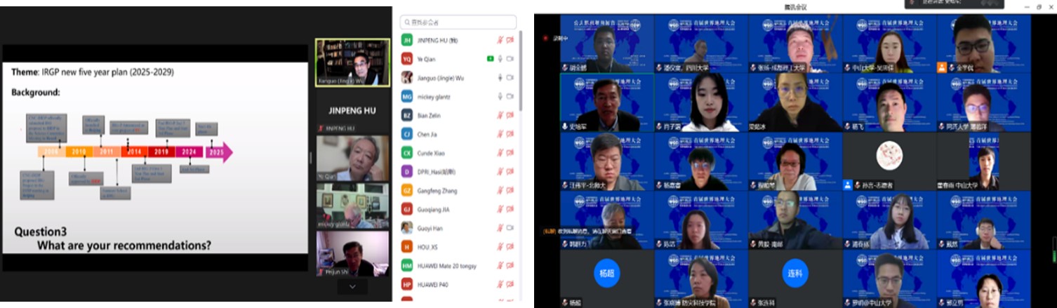 会议专题讨论阶段由国际综合风险防范(IHDP/Future Earth-IRGP)项目办主任叶谦教授主持,围绕联合国从2015年合作实施的国际减少灾害风险(UNDRR)、推进可持续发展目标(SDG)、全球气候变化应对(COP),史培军教授、叶谦教授、邬建国教授、韩国义教授、Michacl GLANTZ教授五位特邀专家总结了过去7年里国际综合风险防范取得各方面进展,并以新冠疫情为例,讨论了新形势下应对全球风险的有效途径,为国际综合风险防范(IHDP/Future Earth-IRGP)第三个五年计划提出相关建议。随后专题报告阶段由史培军教授主持,与会的11位专家学者围绕会议主题减少灾害风险、可持续发展目标、社会恢复力和适应气候变化四个方面进行了广泛的学术交流。