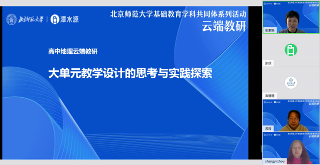 2022年12月14号上午,北师大基础教育地理学科共同体系列活动之“云端教研”活动成功举办。本次教研活动是高中云端教研的第三次活动,主题为“大单元教学设计的思考与实践探索”,共有357位北师大附校的教师们通过云端相连,教研共享。
