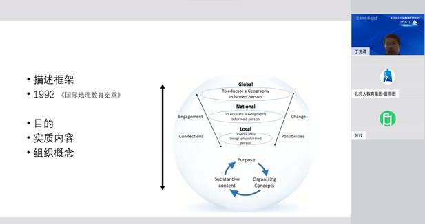 12月31日下午,地理学科共同体学术委员会委员、首都师范大学丁尧清教授作了题为“地理课程国际比较(英美新等国地理课程与考试评析)”的专题讲座。讲座系统分析了美国、英国、新加坡三个国家的地理课程设置。丁教授首先以美国教育的指导思想和美国国情为切入点,介绍了美国地理工作者在中小学课程基础设施建设上面临的艰巨处境,同时依据时间线梳理了美国从20世纪20年代到21世纪地理教育发展的曲折过程。接着,丁教授从英国学校地理课程概况、90年代以前英国自下而上的草根式地理课程发展模式、90年代后走向中央集权的课程发展模式,以及英国地理教科书的特点和考核设置等四个方面介绍了英国的学校地理课程。
