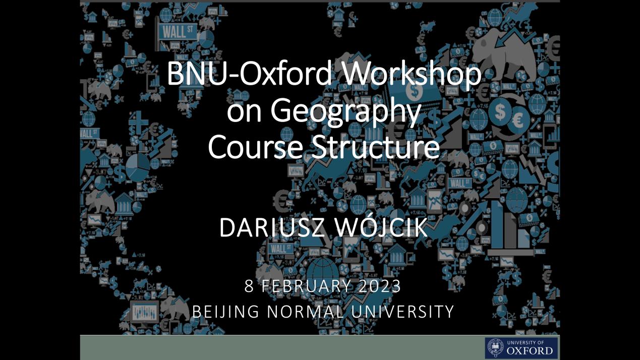 2023年2月8日晚,老司机论坛 —牛津大学地理与环境学院地理学本科教学研讨会于线上举行。会议邀请到牛津大学地理与环境学院教学主任Dariusz Wójcik教授介绍牛津大学地理学专业课程结构和培养特色,北师大地理科学(励耘实验班)和人文地理与城乡规划本科专业也分别介绍了培养方案。