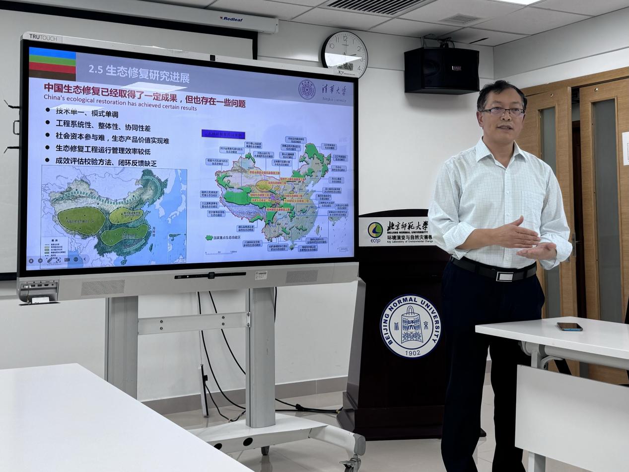 2024年10月18日上午,资源科学前沿系列讲座第八期—“城市生态修复研究与实践”成功举办。讲座邀请清华大学建筑学院景观学系博士生导师,清华大学建筑学院生态修复研究中心主任李锋教授为主讲嘉宾,由于德永教授主持。讲座在京师科技大厦B座933会议室进行,共有学部内数十名学生参会。