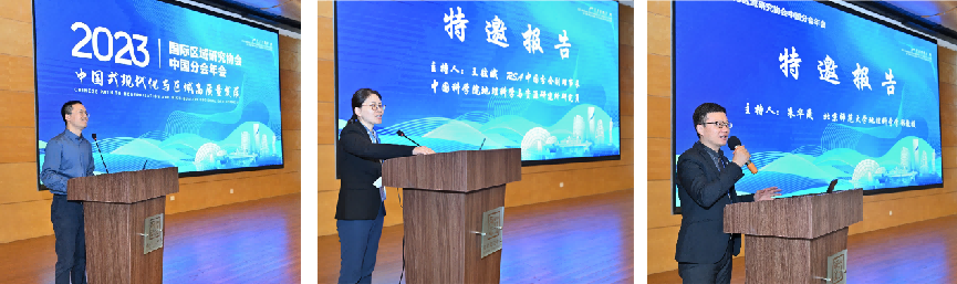 潘峰华教授、王姣娥教授与朱华晟教授分别主持大会开幕式与特邀报告