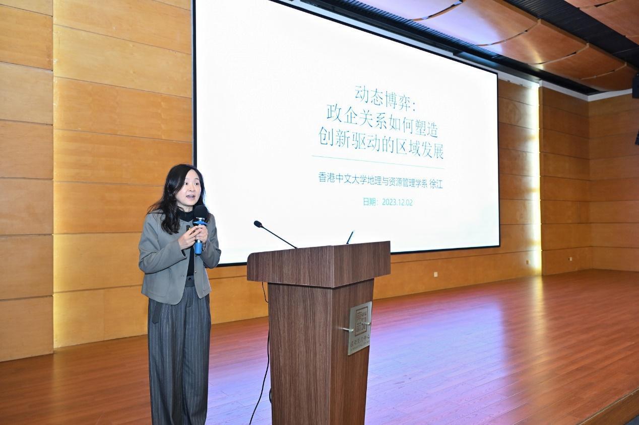 徐江教授分享了题为“动态博弈:政企关系如何塑造创新驱动的区域发展”的报告。徐江教授系统梳理了既有研究,并对已有理论的既定假设进行反思,提出需要构建以政府和企业为中心的分析框架。进一步地,徐江教授从政府和企业双重视角论述了“政府作为何种角色”“企业以何种方式”参与区域发展中的博弈,并从动态博弈视角解析了区域发展中的政企关系及其演化趋势。