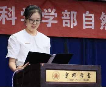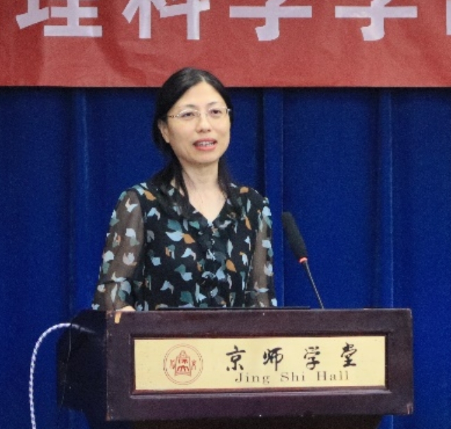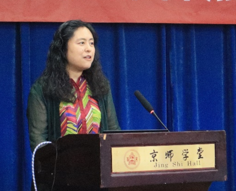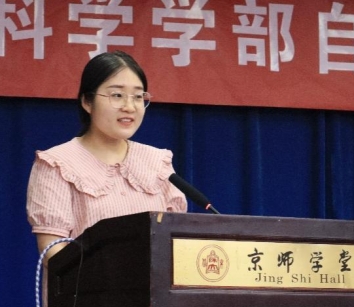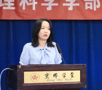 刘颖慧老师以“开来继往,师道贯其中”为题,为同学们解读了校训与校歌的发展历程以及所蕴含的历史底蕴,倡议师生一起秉承北师大百年来的光荣使命,始终不求闻达煊赫,但求学为人师,行为世范。