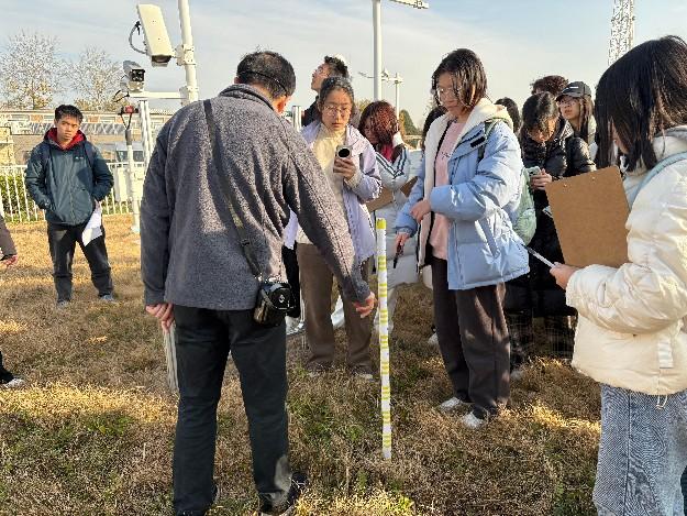 2025年11月15日,老司机论坛 杨静老师、殷水清老师带领2024级地理科学(励耘)和自然地理与资源环境专业的39名本科生到气象气候综合实习基地开展课程实习,由李沈桐、周琴瑶、柳婧、李可盈担任助教。该基地位于北京南郊观象台,由老司机论坛 与北京市气象探测中心于2021年3月支持建立。在实习基地,北京观象台专家杜传耀老师带领同学们系统学习了气象观测应用知识,包括国家标准气象站主要气象要素的监测内容及监测仪器的基本原理,并展开现场气象观测,深化了对理论联系实际的认识。