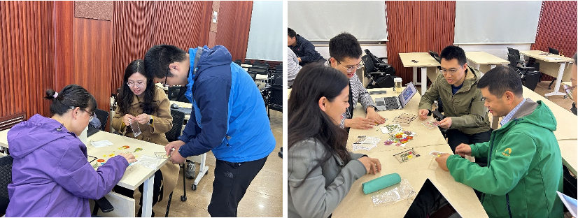 会议第一部分,由党团学工办辅导员程卓老师对学部“二十四节气”心美育活动进行介绍,她展示了过往学生活动中制作的丰富成果,并现场带领老师们体验干花书签的制作过程,参会的班主任老师们沉浸体验,制作了多个精美书签,期待各位老师将活动引入班级,结合班建基金在班内开展丰富多样的心美育活动。