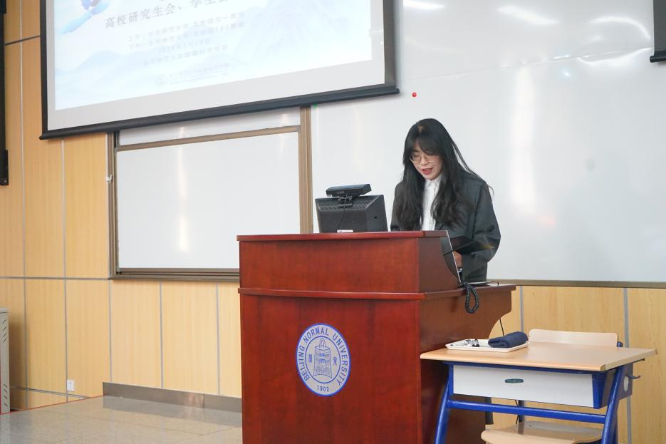 论坛开始,学部党委副书记陈蓉蓉老师致辞。陈老师用“地理”“青年”两个关键词阐述当今地理学、青年大学生面临的时代课题,以一位大学生和资深教授之问引出地理学发展面临的“专”与“博”的时代课题,以学生工作经验和观察引出青年大学生面临“专业能力”与“综合能力”提升的困境,陈老师分享了自己的观点,鼓励大家用系统思维一同探寻这些时代课题,用行动找寻答案。校研究生会主席团成员张颖怡同学在致辞中希望各高校学生会、研究生会能够借此机会加强交流与合作,启发新思路、开拓新局面,携手探索改革创新,不断提升同学满意度、大局贡献度、社会认可度,让地理学学生工作彰显时代特色、凸显学科内涵。