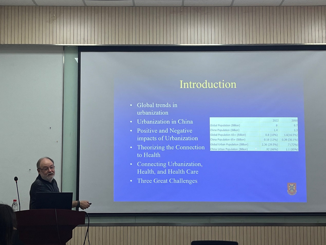 工作坊在Mark Rosenberg教授所作的题为“Urbanization and the Geographies of Health and Health Care”的专题报告中拉开序幕,Mark Rosenberg教授向同学们介绍了相关领域的国际研究前沿,讲述了将城市化、健康与医疗保健等方面相关联对于理解21世纪社会和经济发展的重要性,并结合中国当前所面临的相关挑战展开讨论。