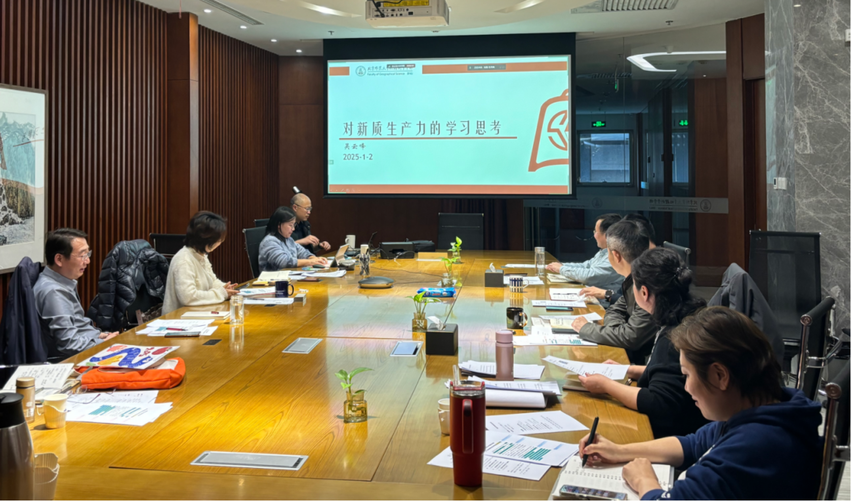 2025年1月2日,地理学部党委理论学习中心组于励耘学苑222会议室举行月度专题学习会议,围绕“对新质生产力的学习思考”展开深入交流研讨。此次专题学习活动由徐洪书记主持,吴云峰常务副部长担任主讲人。