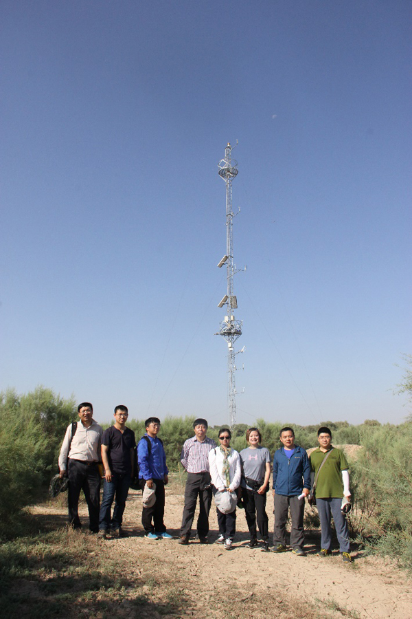 黑河流域水文气象观测网横跨青海、甘肃和内蒙古三个省份,包括3个超级站和8个普通站,覆盖了黑河流域上、中、下游主要地表类型。自2012年起,持续开展了多尺度地表水热通量和水文气象等方面的观测。7月14日,考察人员在黑河中游甘肃省张掖市集合,7月15日-16日考察了位于黑河流域下游内蒙古额济纳旗的四道桥超级站和混合林、荒漠2个普通站。