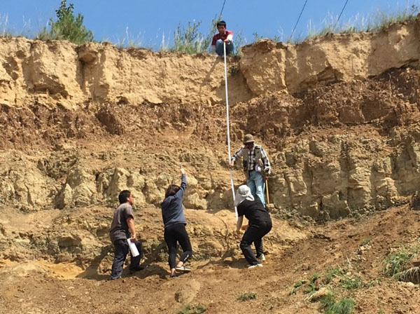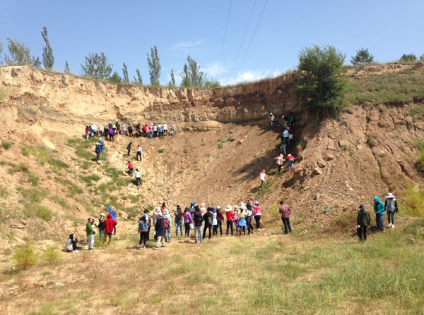 观察并测量大同县西坪镇沙板梁晚第四纪沉积剖面