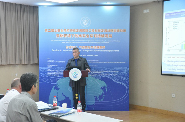 环境演变与自然灾害教育部重点实验室主任、减灾院张强教授应邀参加第二届水安全与可持续发展国际工程科技发展战略高端论坛。该论坛由中国工程院土木水利与建筑工程学部、中国水利学会主办,南京水利科学研究院等单位共同承办,论坛围绕“气候变化与极端事件”、“变化环境与水循环和区域水资源”、“气候变化与水生态环境”、“城市发展与城市洪涝”、“环境变化与可持续发展适应性对策”、“变化环境下水文科学实验”、“变化环境下水-能源-粮食纽带关系”、“西南径流变化与适应性利用”、“中德气候变化边会”,分9个论坛邀请了155位专家学者作学术报告,深入交流变化环境下水安全与可持续发展的前沿动态,探讨未来发展趋势,应对水安全挑战。我院张强教授在论坛1“气候变化与极端事件”作特邀报告Hydrological responses to climatic changes in the Yellow River basin, China: climatic elasticity and streamflow prediction,并主持了分论坛学术报告。