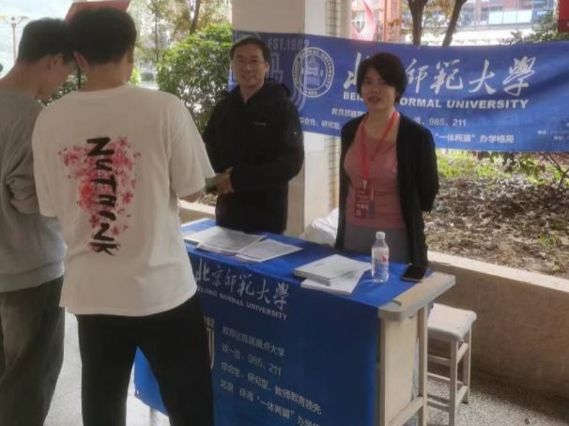 四位老师不辞奔波之苦,以极大的工作热情进行了现场宣讲、逐个讲解答疑。老师们重点向高三学生以及部分低年级学生介绍了我校的师资力量、校园文化、专业设置、毕业生去向等学生感兴趣的情况,并给他们留下QQ、电话等联系方式,方便学生随时咨询。四位老师还有意识的了解了中学实力,联系了各中学的相关负责人和北师大校友,为下一步招生宣传工作重点指明方向,也为未来优质生源基地建设打下了良好的基础。