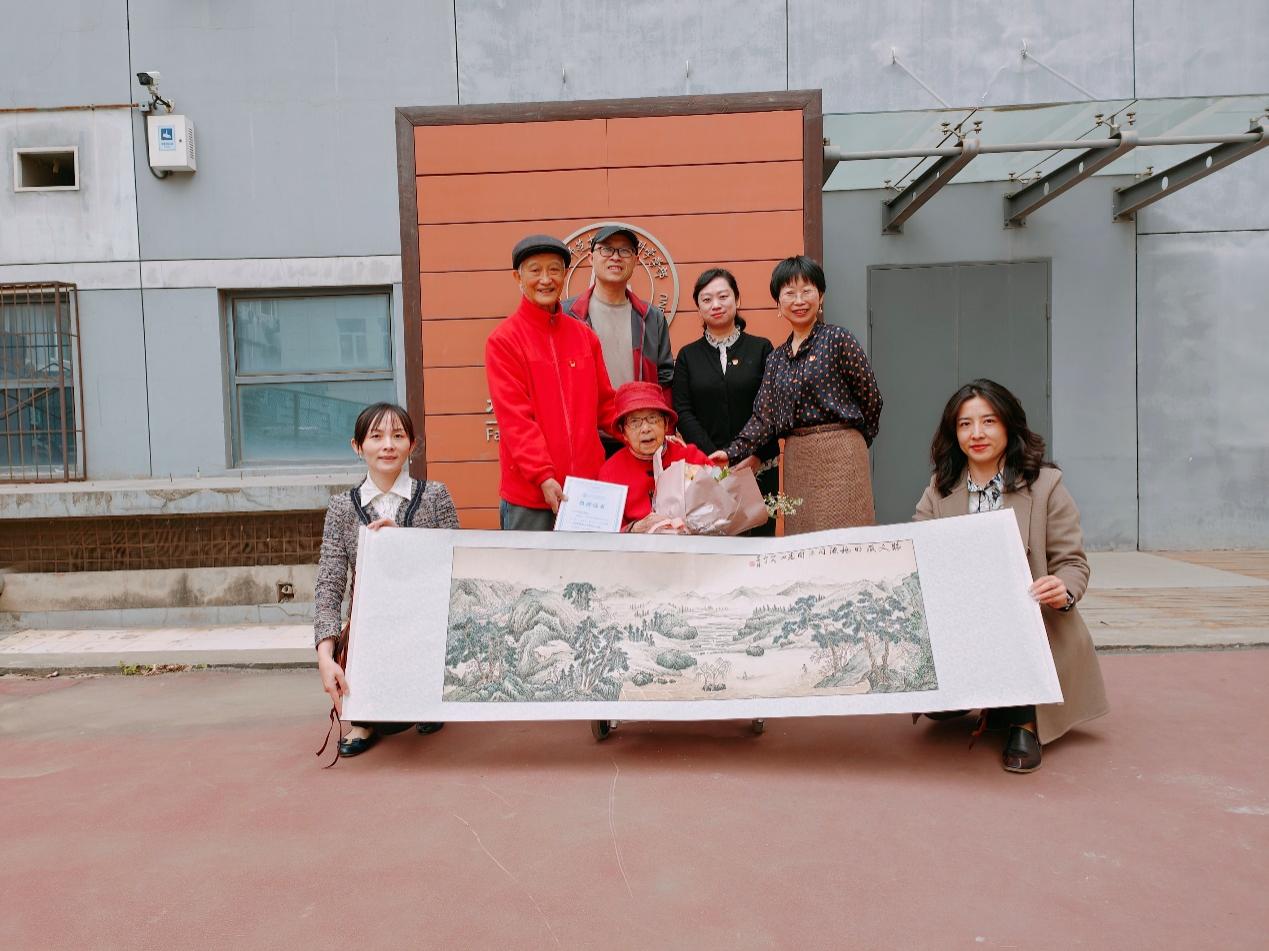 2023年4月13日,离退休教师涂美珍、郑新生夫妇向学部捐赠《临文徵明桃源问津图》一幅,常务副部长吴云峰、副书记张红代表学部接受捐赠。