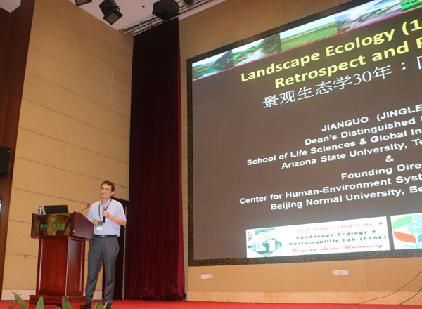11月11日上午,邬建国教授应邀作了大会主题报告。汇报的题目是“景观生态学30年:回顾与展望”。他回顾了1987-2017年景观生态学的发展历程,通过总结发表在《Landscape Ecology》杂志上的论文特征,发现景观生态学的论文发表数量和影响力逐年递增。他认为中国正从景观生态学大国向强国转变,并将在未来景观生态学发展过程中扮演更加重要的角色。邬建国教授的报告鼓舞人心,得到了参会学者的热烈反响。