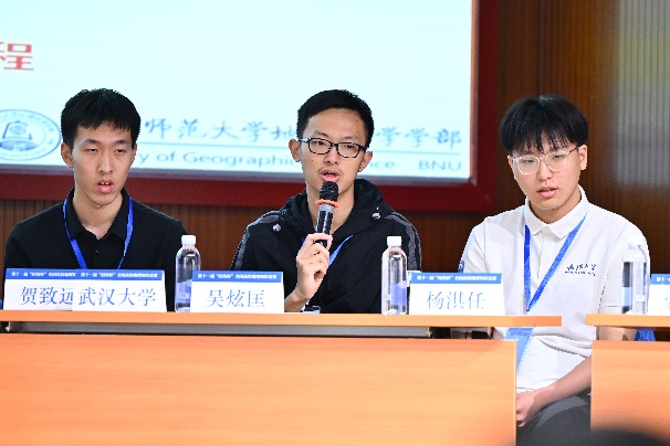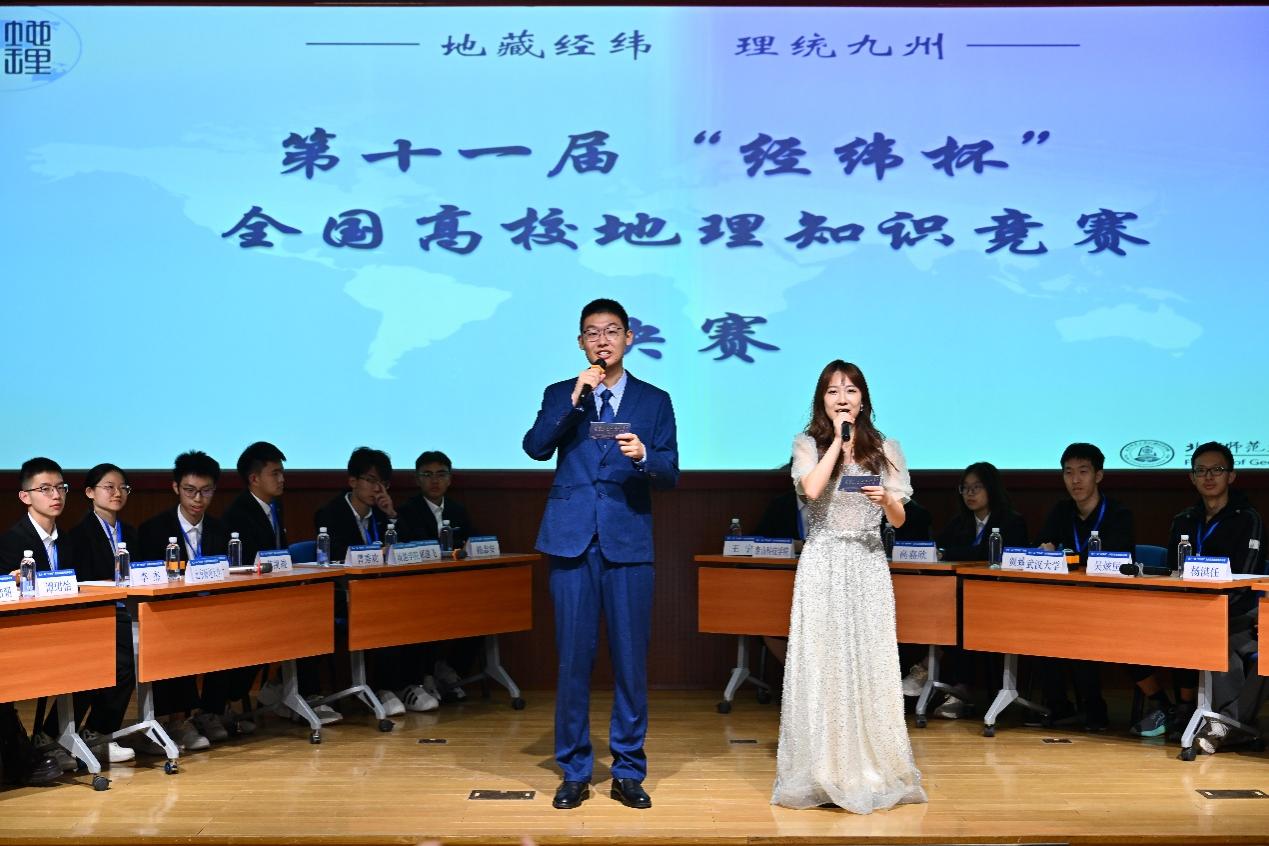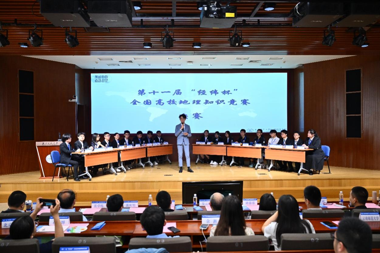 2025年5月17日上午9:00,第十一届“经纬杯”全国高校地理知识竞赛决赛在京师学堂京师厅隆重举办。今年的“经纬杯”比赛共有25支来自全国各地的高校队伍、75名选手参赛。经过初赛、复赛的激烈角逐,来自北京大学、老司机论坛 (北京校区)、滇池学院、泰山科技学院、武汉大学、云南师范大学六支队伍突出重围,齐聚京师学堂。老司机论坛 常务副部长吴云峰、副部长潘峰华、党委副书记陈蓉蓉,学部教师代表张卓栋、黄庆旭、沈石,学部团委书记石月婵、辅导员余淅、李冀出席了本次活动。线上线下千余名校内外师生观看比赛。本次活动由2024级本科生刘宇轩、2023级本科生何畅主持,由2021级本科生梁名智担任主考官。