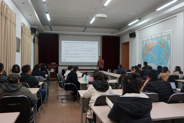 1月5号Ben教授在地理学院180会议室开始了其全球城市网络研究系列学术讲座,其中第一场:Chinese cities in the world city network, 2010-2016,和第二场:Disentangling agglomeration and network externalities: conceptual typology and applications,分别在上午和下午举行,同学们和老师们都展现出了极高的学术热情,虽然是研究生的考试周,但是来之本院以及其他学院、外校的师生一共40多人参加了报告会。特别是在报告结束后的互动环节中,同学和老师们与Ben教授展开了积极的交流。Ben教授耐心的解答同学们的各种问题,取得良好的效果。系列讲座的第三场: Polycentric urban development in China: some empirical evidence 和第四场分别于1月8号、9号上午在148会议室举行,虽然讲座临近结束,但同学的依旧热情不减,大家参与讲座并积极开展讨论。