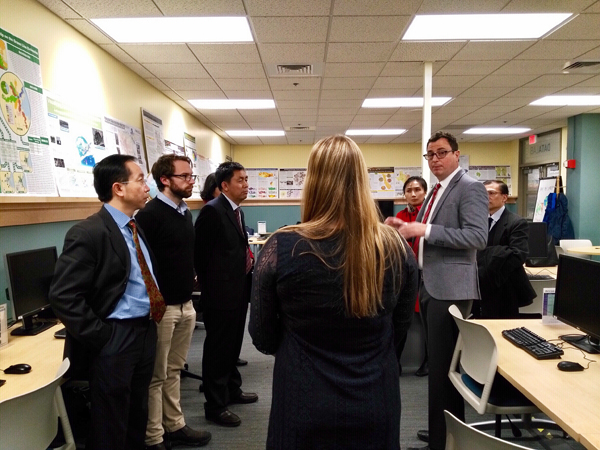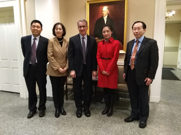 访问期间,代表团拜见了塔夫茨大学校长Anthony P. Monaco,副教务长Dawn Geronimo Terkla、文理学院副院长Joseph Auner等学校领导,先后走访了塔夫茨大学孔子学院、文理学院、工学院,并与城市与环境政策及规划系、土木与环境工程系、地球空间信息技术中心、数据中心等单位,与单位有关领导和专家进行深入交流。塔夫茨大学孔子学院美方院长王命全教授和中方院长姚建彬教授全程参加了上述所有活动。