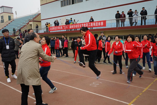 为庆祝“三八”国际劳动妇女节,展示教职工阳光健康的精神风貌,学校于2018年3月7日下午举办一年一度的特色活动——庆“三八”教职工跳绳团体比赛。此次全校共有59支代表队参赛,其中地理学部共组织两支队伍参赛,并分别以第11名、第21名的成绩荣获二等奖和三等奖的荣誉。