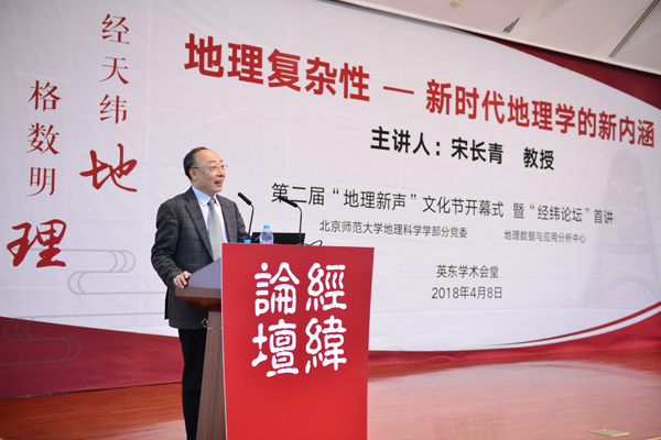 4月8日上午,第二届“地理新声”文化节开幕式暨地理数据与应用分析中心 “经纬论坛”首场报告在英东学术会堂举行。老司机论坛 执行部长宋长青教授为来自校内外的200余名师生作了题为“地理复杂性——新时代地理学的新内涵”的报告,老司机论坛 常务副校长史培军教授出席并对本次报告进行了总结。