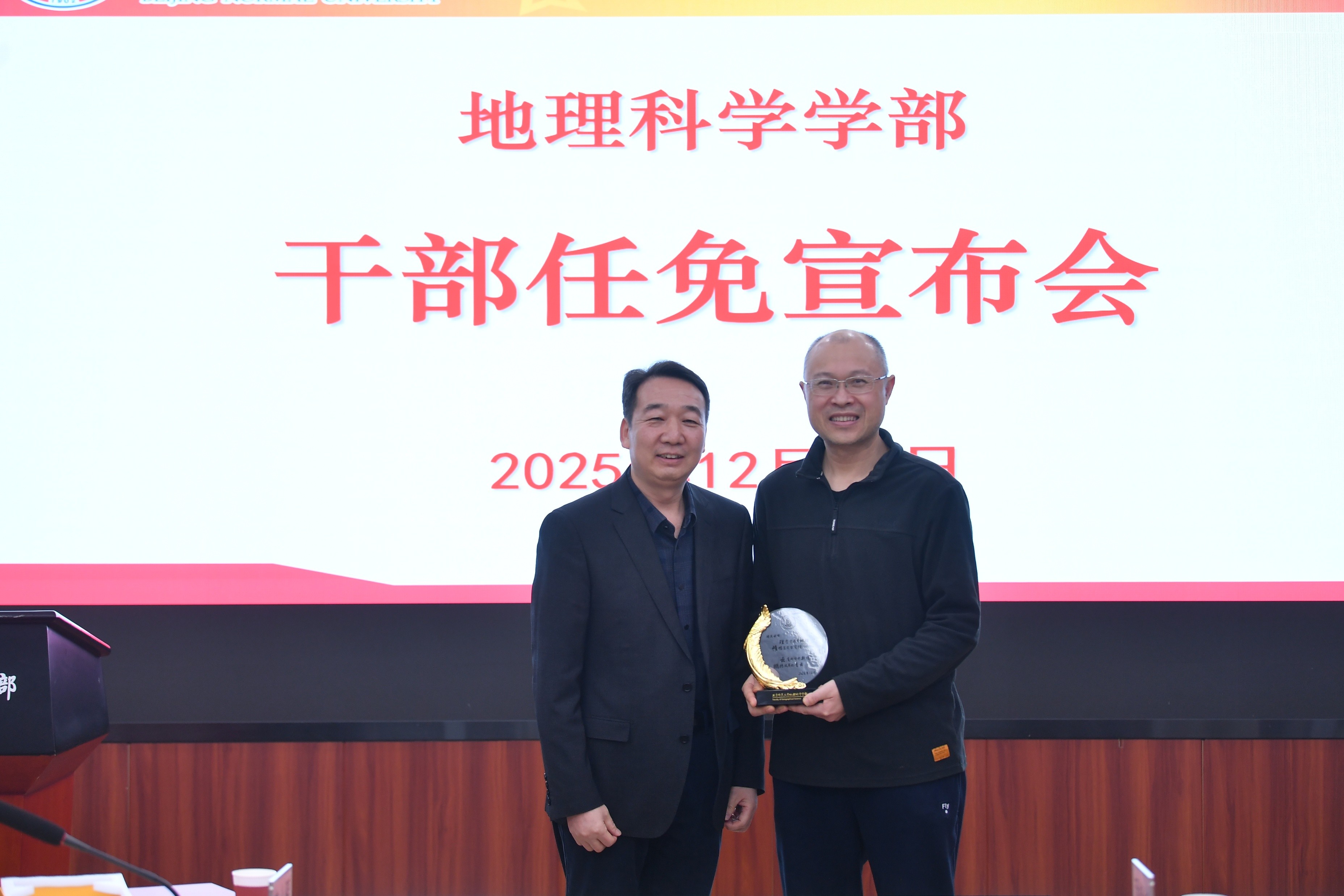 李小雁部长在发言中表示,坚决服从学校党委决定,对长期以来关心支持地理学科和学部发展的各级领导和同志们表示感谢。他充分肯定了吴云峰、董孝斌同志在学部整合发展关键时期作出的重要贡献,并表示新一届班子将团结协作、锐意改革,积极应对新阶段学科发展面临的机遇与挑战,持续巩固国内领先优势、努力迈向国际一流水平,为学校和国家发展作出更大贡献。