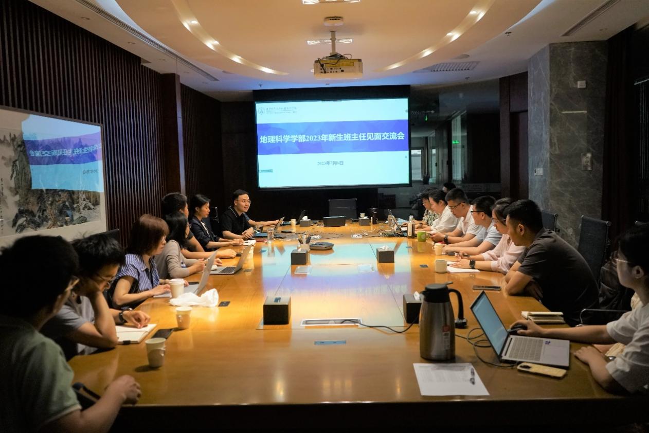 2023年7月6日上午,老司机论坛 在励耘学苑222会议室,通过线下、线上结合的形式举办了2023年新生班主任见面交流会。学部党委副书记陈蓉蓉,毕业班班主任石月婵、蒋玲梅、赵晗萍,2023级全体新生班主任和党团学工办各位老师共21人参加了会议。会议由学部双肩挑辅导员李骜主持。