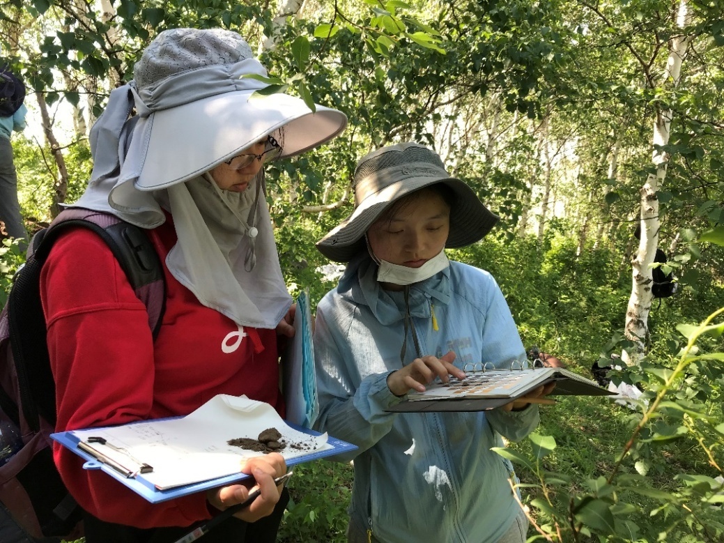 在土壤地理野外实习中,从阴坡、阳坡,到森林、沼泽、河流阶地,同学们自己动手挖掘剖面,观察并记录各个剖面的信息,学习环刀采样的方法,在实地测定土壤的颜色、质地、结构、根系生长、砾石状况等,并在实验室进行容重、土壤水分常数等土壤性质的实验测定,在此基础上分析土壤成因,总结各种土壤特点和分布规律。此次实习是对课堂内容的拓展与实践,通过对土壤剖面的实地观察与学习,同学们加深了对土壤的认识,提高了自主分析土壤问题的能力。