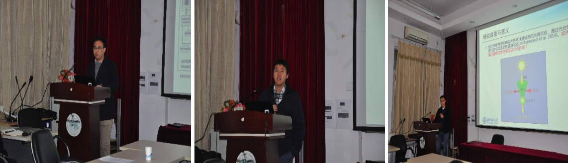 余涛、漆建波、徐山三位博士分别以“基于GLASS数据的全球陆地植被生产力估算”、“基于真实三维场景的辐射传输模型研究进展”和“干旱胁迫下玉米冠层日光诱导叶绿素荧光和PRI指数的日变化规律”为主题作了报告,介绍了他们的最新研究进展与学术成果和经验。
