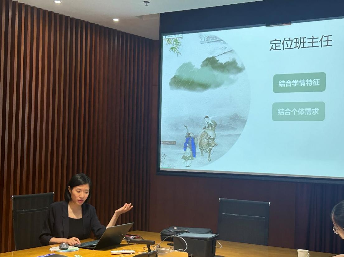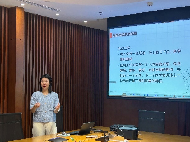 会议第四部分,由党团学工办石月婵老师对学部“543爱1心理健康工作体系”介绍,为新生班主任提供了倾心下午茶、新生班级破冰团辅、新生宿舍和人际关系的OH卡、沙盘团辅等学部心理辅导资源,并邀请到学部心理专员李博浩老师带领现场新生班主任进行破冰活动体验,向各位新生班主任推荐了适合班级首次班会的破冰游戏。各位新生班主任现场体验破冰活动并十分投入,获得了良好的团辅体验。