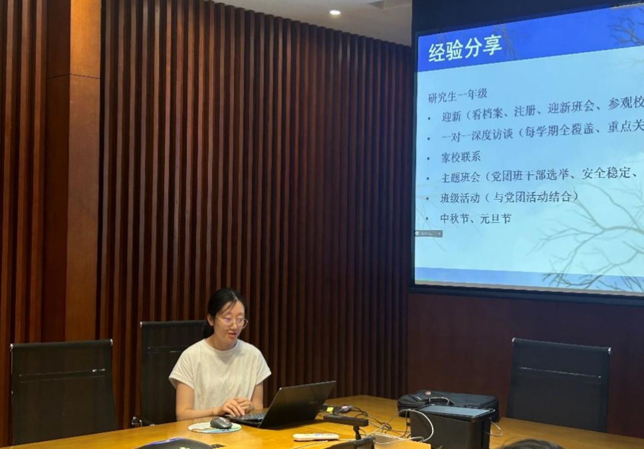 会议第二部分,由毕业班班主任朱忠礼、范天一、谢先红进行班级建设工作经验分享。本科毕业班班主任朱忠礼老师针对与班级同学的深度辅导经验进行分享,硕士毕业班班主任范天一老师从硕士不同阶段的不同重点工作进行经验分享,博士班毕业班班主任谢先红老师从危机事件应对等不同角度进行分享。三位老师的介绍细致且真诚,与会教师表示收获颇丰。