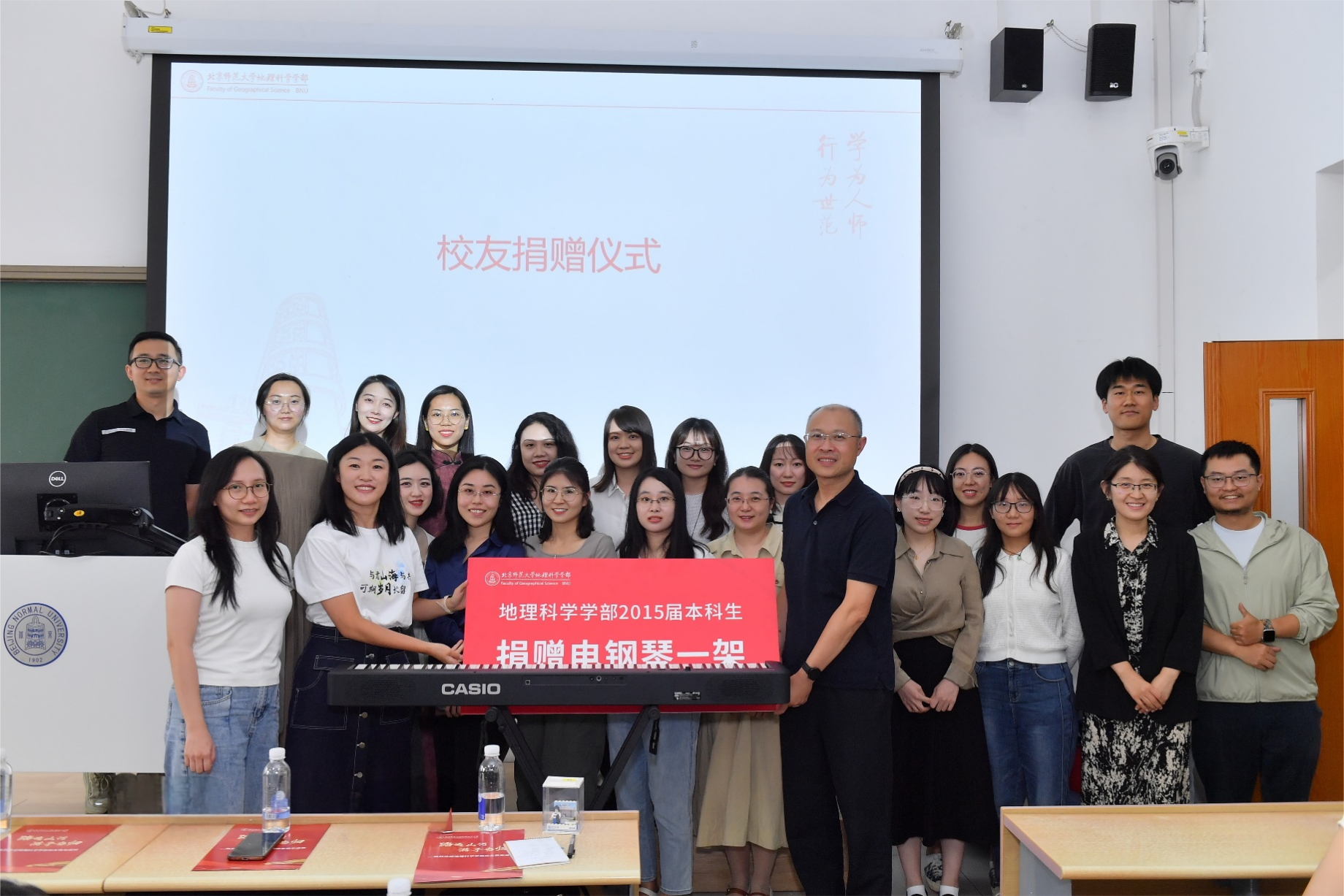 在特别惊喜的校友捐赠仪式环节,2015届本科师范和非师范班共同为学部捐赠了一架电子钢琴,这份心意承载着对校园时光的深切眷恋,更饱含对师弟师妹们的殷切期许。感谢校友们始终心系母校发展,以实际行动反哺学部。这份深情厚谊,将化作学子们前行的力量,激励师生传承地理精神,共筑卓越学部!