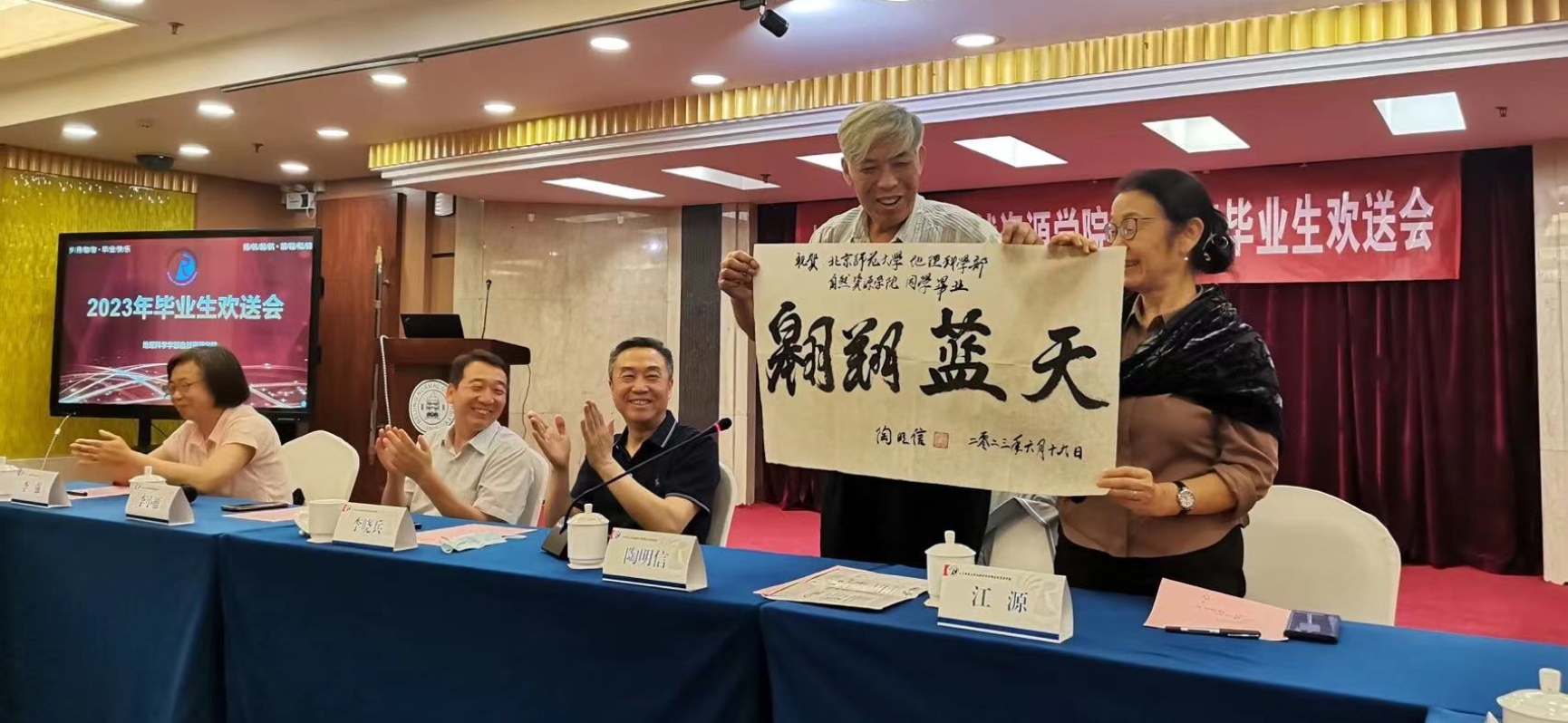 与会教师为毕业生颁发学院精心准备的毕业礼物,与同学们进行合影留念。至此,2023年毕业生欢送会圆满结束,祝各位毕业生同学毕业快乐,前程似锦,来路漫漫,后会有期!