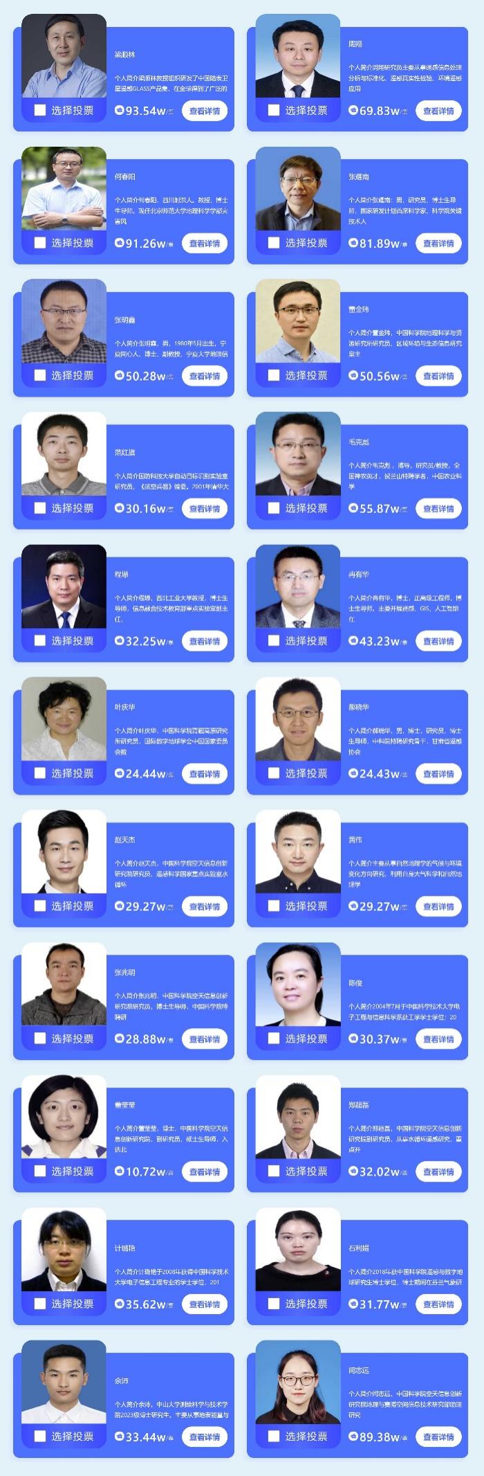本次活动自2023年11月10日启动以来,广大遥感科学工作者积极参与。据统计,本次活动共有22位在我国遥感科学数据开放共享领域做出突出贡献的科学家作为候选人;来自国内外48.2万人通过互联网参与投票,累计投票次数超过192.8万。活动组委会依据票数确定中国遥感数据开放共享年度人物以及入围人物。