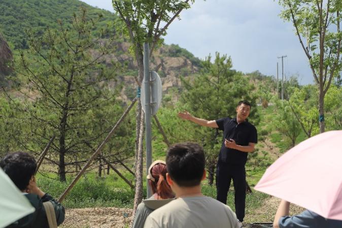 下午,在规自分局负责人的带领下,老司机论坛 自然资源学院师生走入项目现场实地感受自然资源管理项目。在崔村镇八家村,师生实地考察了废弃矿山生态修复的情况。崔村镇八家村位于昌平区北部山区,曾经是大型国营煤矿企业所在地。该地的废弃矿坑通过园林部门设计、修复工程实践等步骤进行修复,现场的生态质量得到大幅度提升。同学们通过现场实践,对于矿山进行自然恢复、人工治理、综合利用的方式进行体会。