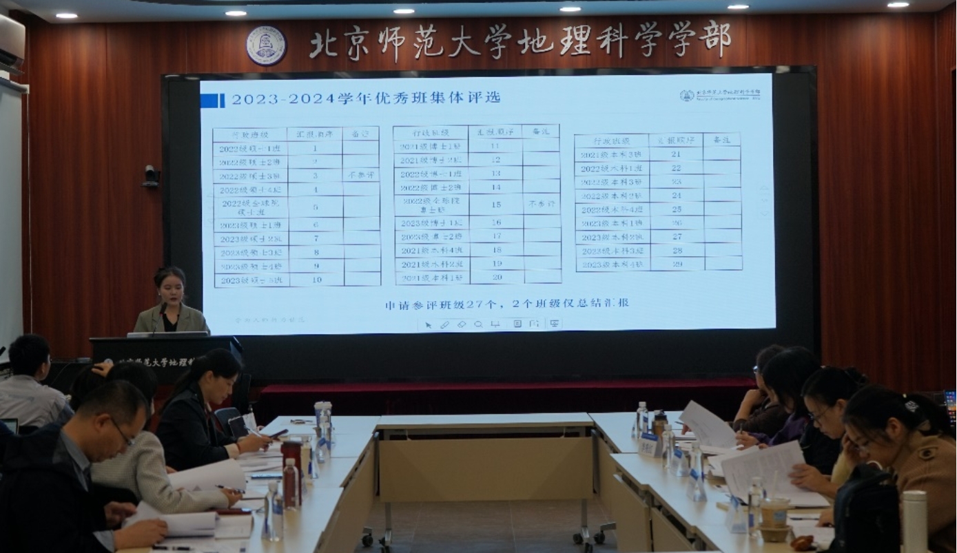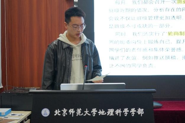 学部党委书记徐洪老师为本次会议进行总结。她指出优秀班集体评优是一份集体荣誉,展示了班级凝聚力和整体风貌,各班在汇报时需把握重点,突出核心,多借助数据与实例展示内容。徐老师对下一学年的班级工作提出了期许,建议各班进行横向与纵向学习并及时总结反思,建议各班在下一学年班级活动规划中拓展视野,立意高远,从公益与科普出发,展现北师大地理学子的社会担当。