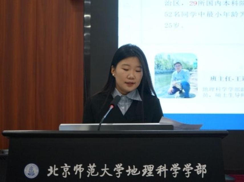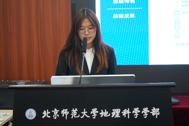 校党委学工部思政教育处副处长王培老师在答辩结束后进行点评。她充分肯定了地理学部各班级的精彩表现,着重肯定了各班上一学年活动中主题班会的开展情况,强调各班规范班级制度,并建议各班从“规范与特色的关系”“集体和个体的关系”“过去和未来的关系”三个关系再次总结凝练班级工作。