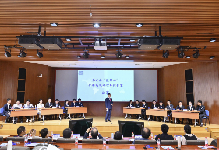 第九届“经纬杯”全国高校地理知识竞赛决赛于京师厅报告厅举办。地理学部常务副部长吴云峰、党委副书记陈蓉蓉,学部叶思菁、张卓栋、毛婷以及决赛队伍部分高校带队教师和学部近百名师生线下参与,一千余名校内外师生线上观看了本次比赛。活动由学部2020级本科生蔡雅涵、2021级本科生梁名智主持。学部2022级的硕士研究生王泽担任地理知识竞赛决赛主考官。
