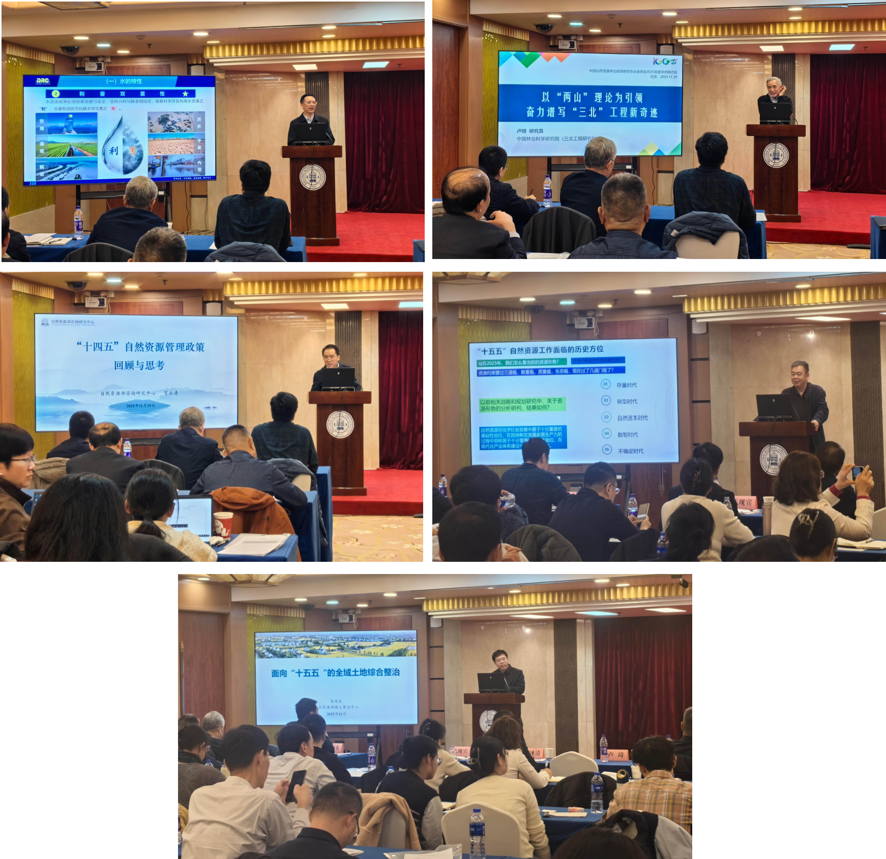 会议分为上下半场,共安排八场专题报告。上半场围绕宏观政策与制度设计展开,中国自然资源经济研究院张新安研究员针对“‘十五五’自然资源形势展望”作报告;中国林业科学研究院卢琦研究员就“以‘两山’理论为引领,奋力谱写‘三北’工程新奇迹”作报告;自然资源部咨询研究中心贺冰清以“‘十四五’自然资源管理政策回顾与思考”为题作报告;水利部发展研究中心陈茂山研究员就“‘十五五’水资源制度与政策创新”作报告;自然资源部国土整治中心陈现宾研究员就“面向‘十五五’的全域土地综合整治”作报告。