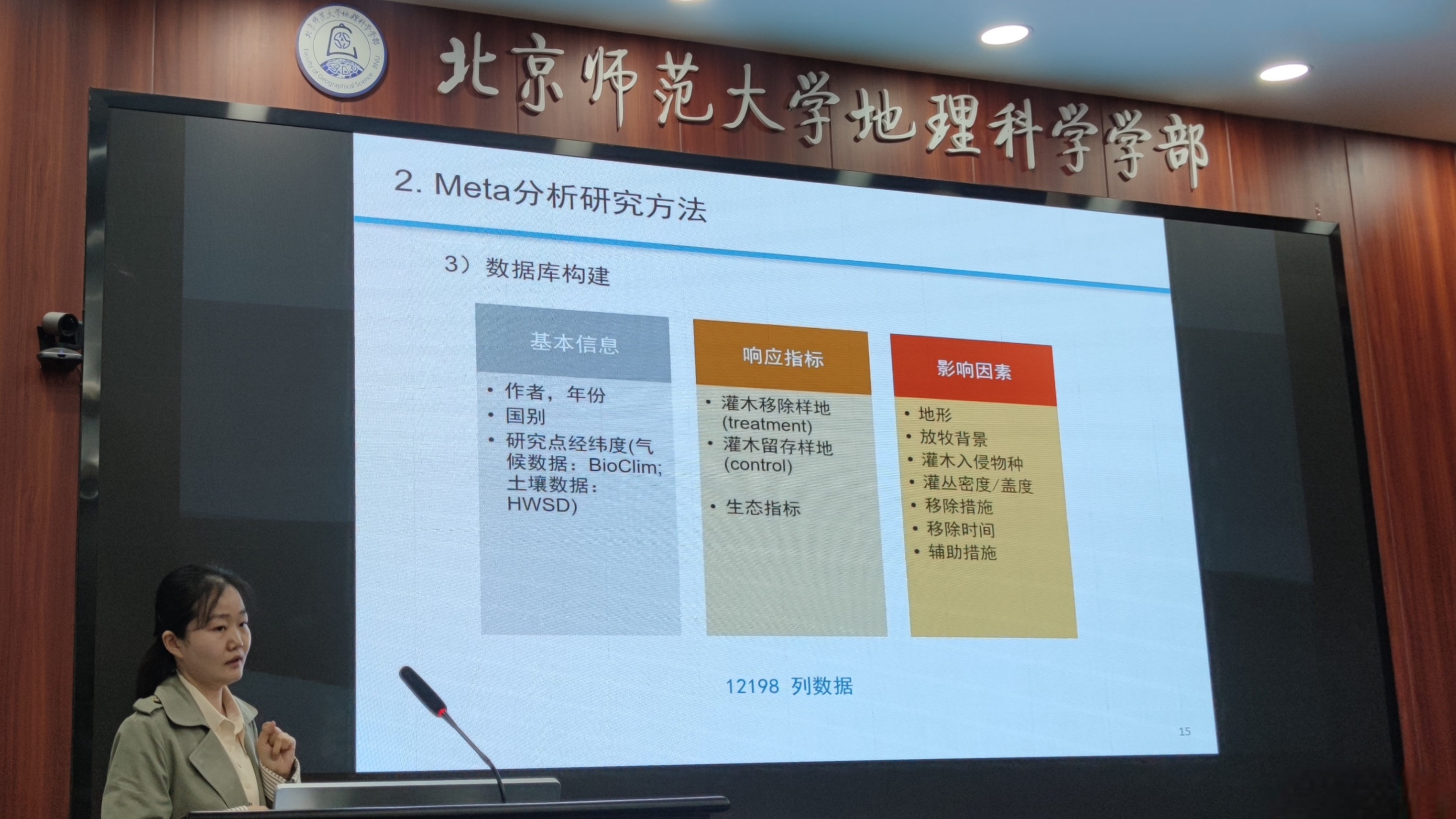 丁婧祎老师基于发表在Nature Plants的论文“The success of woody plant removal depends on encroachment stage and plant traits”(文章链接://www.nature.com/articles/s41477-022-01307-7 )作题为“全球灌木移除对灌丛化过程的逆转效果”的报告。丁老师介绍此研究利用Meta分析方法,基于全球524项灌丛化和灌木移除研究12198 组数据,首次在全球范围内将灌木移除过程和灌丛化过程链接,阐明了灌木移除无法逆转灌丛化过程,且灌木移除的效果极大受限于灌丛化的物种和灌丛化的阶段,对促进灌丛化生态系统的可持续管理具有重要意义。此外,丁老师向在座师生分享了Meta分析写作的心得,详细介绍了“如何选择Meta分析的问题”“如何做好Meta分析”以及“如何写好科研‘故事’”,并围绕自己的投稿经历和修改经历,建议大家要找到合适自己文章的期刊,认真细致、举一反三地思考和回应审稿意见。