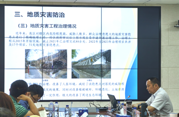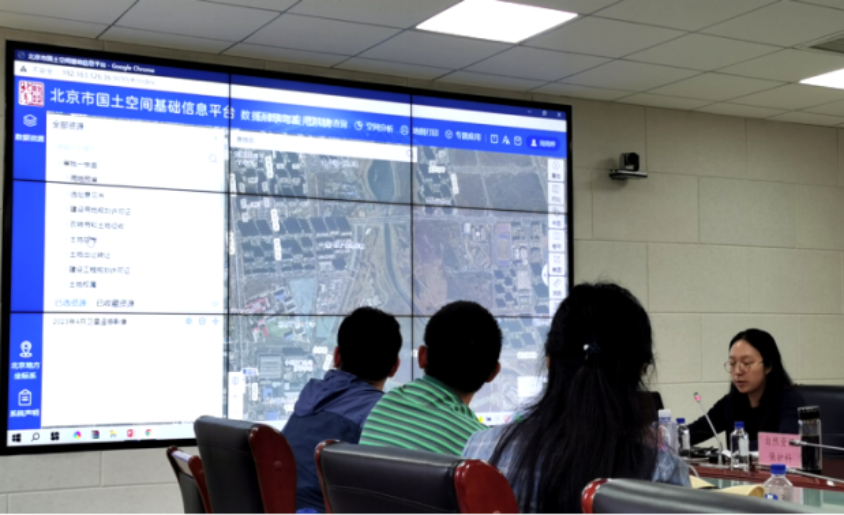 规划编制与城市设计科介绍了土地资源现状与分区规划等内容,并强调该科室的规划编制是后续规划实施的基础。规划实施科科长进行了题为《营商环境改革下的规划实施》的介绍,讲解了审批制度改革在当前营商环境下的重要性。生态修复科介绍了地质灾害防治与废弃矿山修复治理情况,以及规划编制等工作。市政交通科的工作涉及市政系统和交通系统的规划编制,介绍内容包括基础设施的设置与规划。自然资源调查监测科科长重点介绍了国土变更调查的总体目标、实施原则、工作任务与方法,以及地理国情监测等内容。所有者权益科通过题为《门头沟区生态产品价值实现探索》的介绍,从认识生态产品及价值、门头沟生态本底与区情、门头沟生态价值实现探索三个方面进行了介绍,强调了生态产品总值(GEP)的概念与核算。综合审批科的工作贴近基层,主要负责政务服务工作和建设项目审批工作。随后演示了北京市国土空间规划“一张图”操作系统——北京市国土空间基础信息平台。该平台功能强大,展示了不同时期的卫星遥感影像及土地利用变化过程,这一平台的开发对于优化审批流程、节约办事效率有着重要作用。
