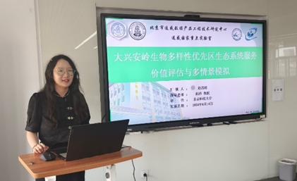下半场由郭银坤同学接任主持人,赵思晴同学以“大兴安岭生物多样性优先区生态系统服务价值评估与多情景模拟”为主题,细致全面地介绍了大兴安岭保护区的生态系统服务价值估算方法和未来情景模拟结果,为中国的自然保护区提供了可持续规划案例。最后,刘鹭玲同学分享了“基于夜间灯光遥感的全球长时序用电人口比例估算”的报告,报告基于改进的新方法构建的全球格网人口数据和全球用电人口比例数据,增强了对可持续能源转型的理解。