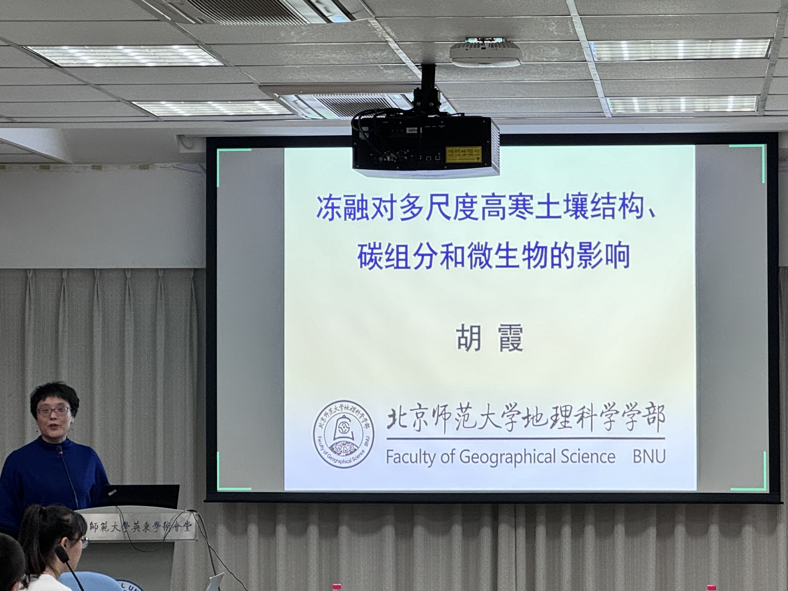 21日上午,特邀学术报告环节由刘绍民教授和吴秀臣教授分别主持。中科院地理科学与资源研究所高扬研究员、中科院生态环境研究中心高光耀研究员和中科院青藏高原研究所芦晓明研究员分别作了题为“水生生态系统碳代谢与碳生物地球化学循环”“黄土高原流域水沙变化特征与驱动机制”和“高寒灌木年轮生态学研究”的特邀报告。之后,老司机论坛 自然资源学院的刘绍民教授和胡霞教授分别作了“极端生态环境水循环关键参量检测设备与物联网检测系统研制和示范”及“冻融对多尺度高寒土壤结构、碳组分和微生物的影响”的学术报告,参会师生针对报告内容进行了深入讨论和交流。