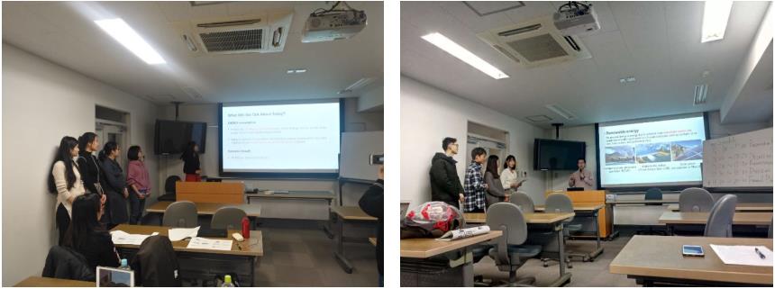 交流期间,横滨国立大学为中方学生安排了四场学术讲座,经济学部Uemura Hiroyasu教授、Yamazaki Keiichi教授、Parsons Craig教授和Xinyuan Zhang教授分别介绍了核能利用发展与环境、日本政治经济发展史、市场原理和科斯定理、国际贸易中的物流配送等。此外,中日双方学生围绕“能源、环境与发展”这一主题进行了两场学术讨论。讨论中,双方学生分别就中国和日本的能源利用与环境、经济的关系和核能的利用及前景等问题进行了英文汇报,双方学生踊跃发言,积极交换意见。