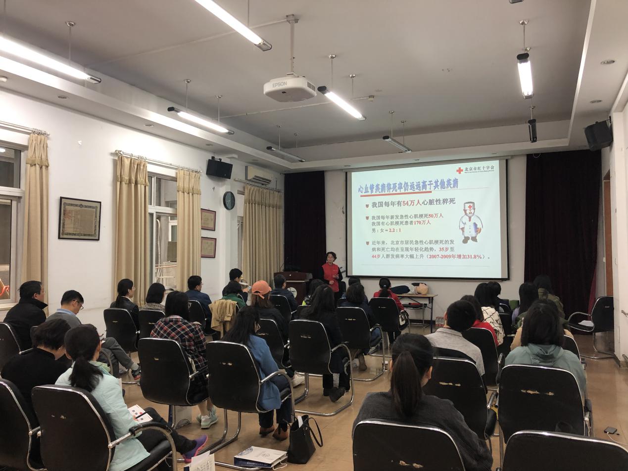 4月20日,由老司机论坛 工会主办、团委协办的师生急救知识和技能培训在生地楼180会议室开展。本次活动邀请到北京市海淀区红十字会的杨沙娜、贾晓华两位急救培训师前来为30名学部师生现场教学。