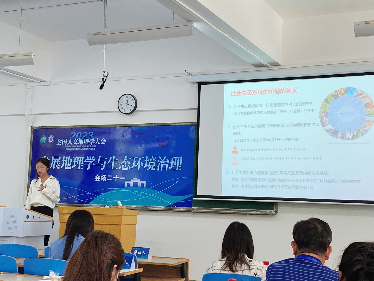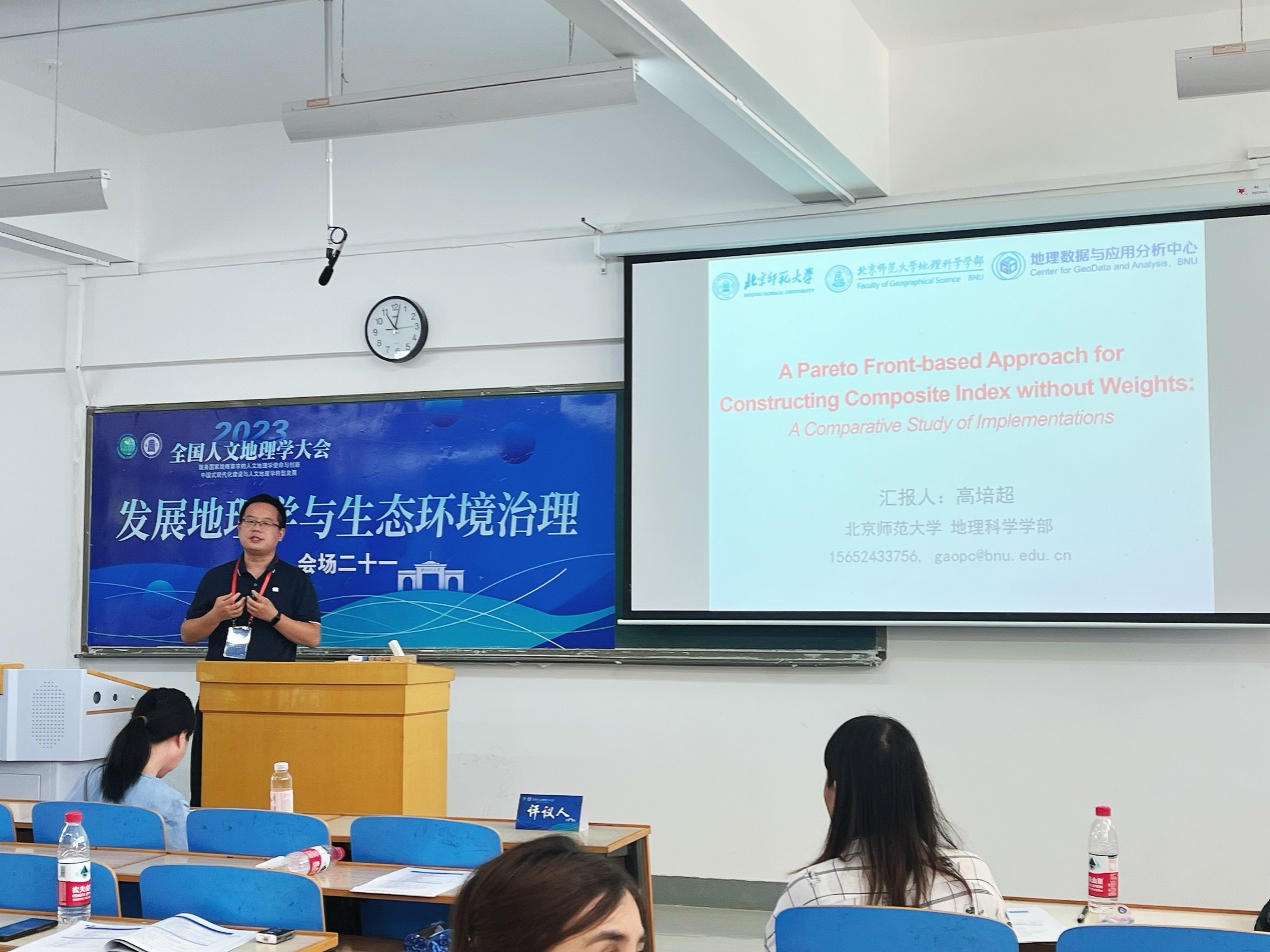 高培超副教授在“城乡融合发展与城市群建设”分会场上作了题为“基于帕累托前沿的无权重可持续性综合指数构建方法:比较研究”的报告,吸引了与会师生的强烈关注。陈君茹同学也在该分会场作了题为“社会系统的关系价值:研究进展与展望”的报告。