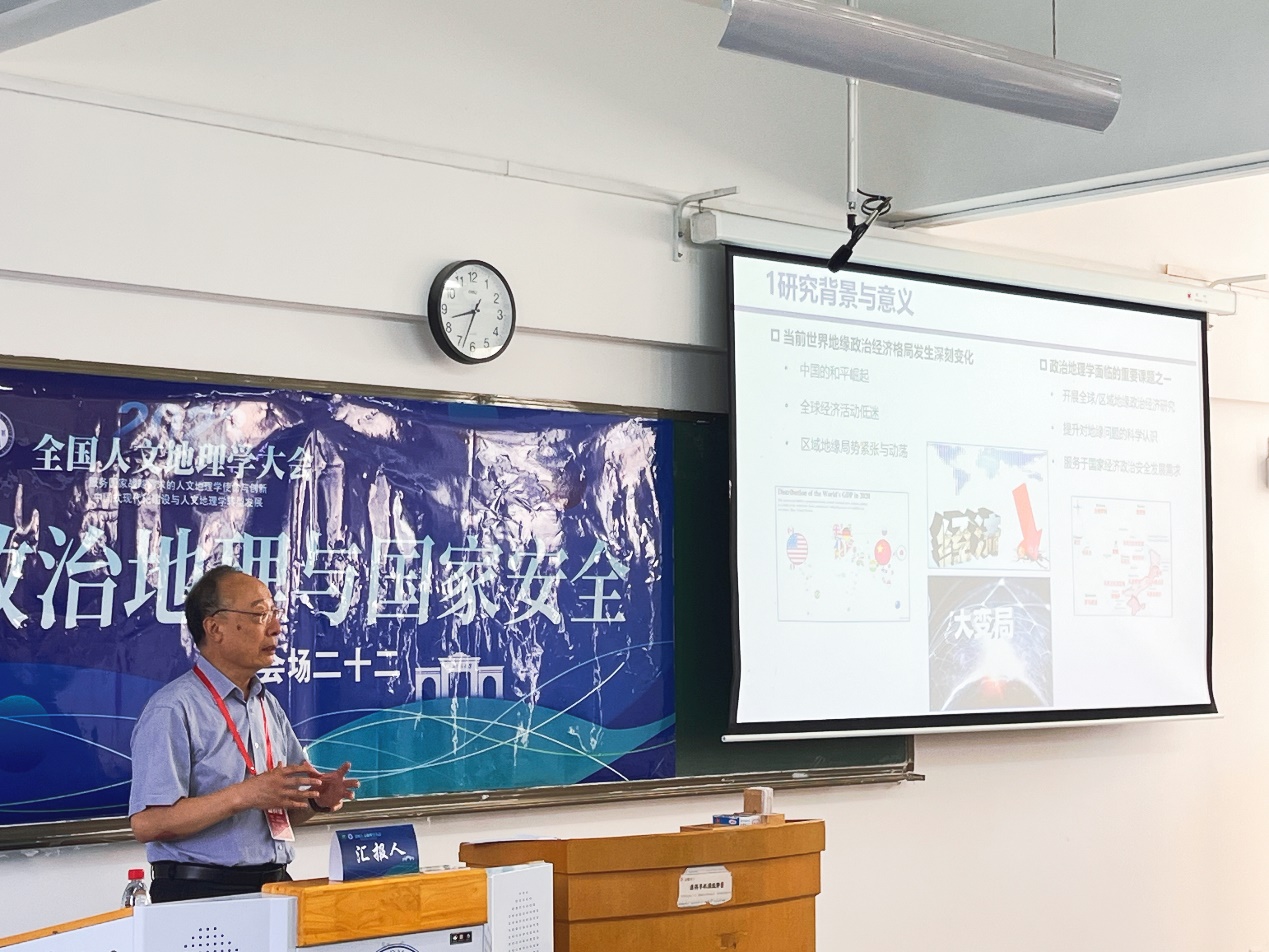 7月30日上午,宋长青教授在“政治地理与国家安全”分会场上作了题为“中美与环印度洋地区国家之间贸易关系及其对地缘关系的影响研究”的报告,并作为评议人对分会场报告进行了点评。