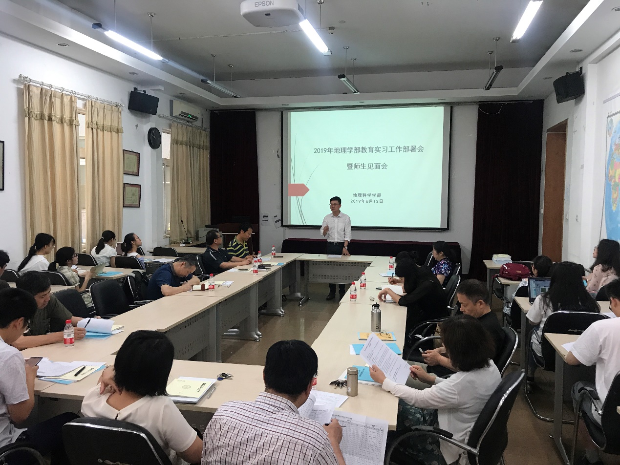 继5月15日召开教育实习动员会之后,6月12日上午,学部2019年教育实习工作部署会暨师生见面会在生地楼180会议室举行。教育实习指导教师、教务及学工管理老师和2016级地理科学(师范)专业的全体学生参加了此次活动。会议由教学副部长朱华晟主持。